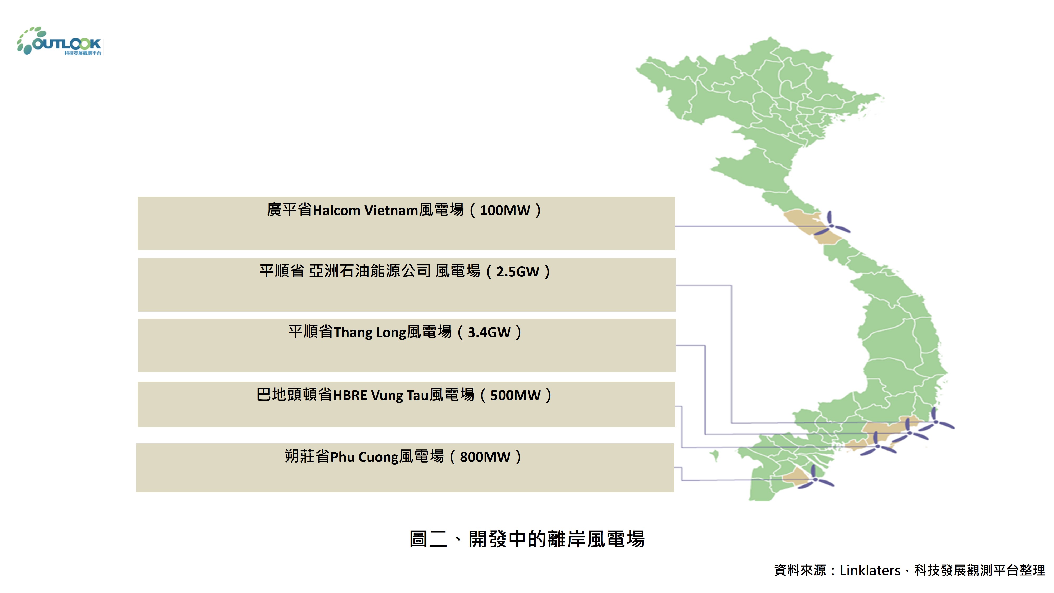 此外,2019年全球風能理事會(The Global Wind Energy Council , GWEC)發布的報告「東南亞市場:越南市場的觀察」註1亦指出,隨著東南亞地區人口及GDP的成長,電力需求也隨之迅速成長,能源政策逐漸邁向綠色經濟。而風力發電在東南亞地區是兼具低碳與成本效益,並有利於當地經濟發展等優勢。其中越南是東南亞地區非常適合發展離岸風電的國家,其發展優勢包括海岸線長且尚有許多未開發的優質風場,再加上越南政府也積極推動離岸風電,因而引起全球投資者的關注。