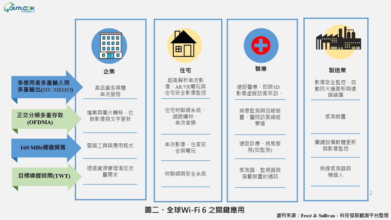 Wi-Fi 6新技術規格在各產業的應用如圖二。