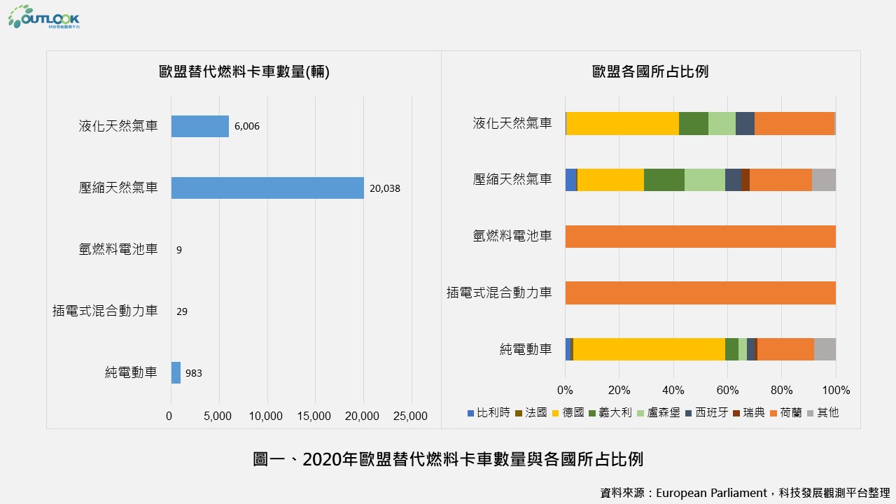 另一方面,荷蘭、葡萄牙、德國、法國、西班牙與義大利已宣布的氫能策略,亦包含運輸行業(主要為重型車輛)及加氫站等具體目標: