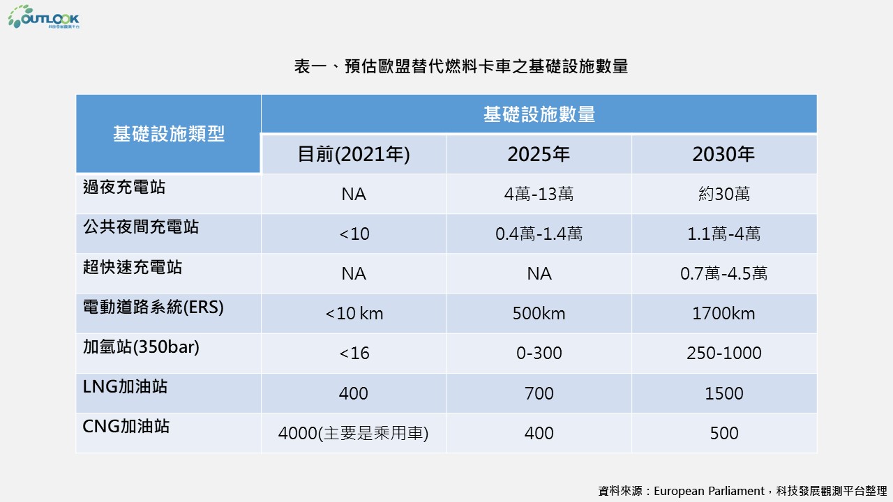 與全球其他地區相比,歐洲生產與發布的純電動卡車型號及數量較多,而其主要用於城市物流,並集中於德國與荷蘭兩個國家,其中荷蘭將於2025年在30至40個城市中規劃貨運零排放區。目前續航里程高達400公里的純電動卡車已投入商業生產,並持續研發以提升續航里程,預期其將成為零碳排目標下較具成本效益的方案。