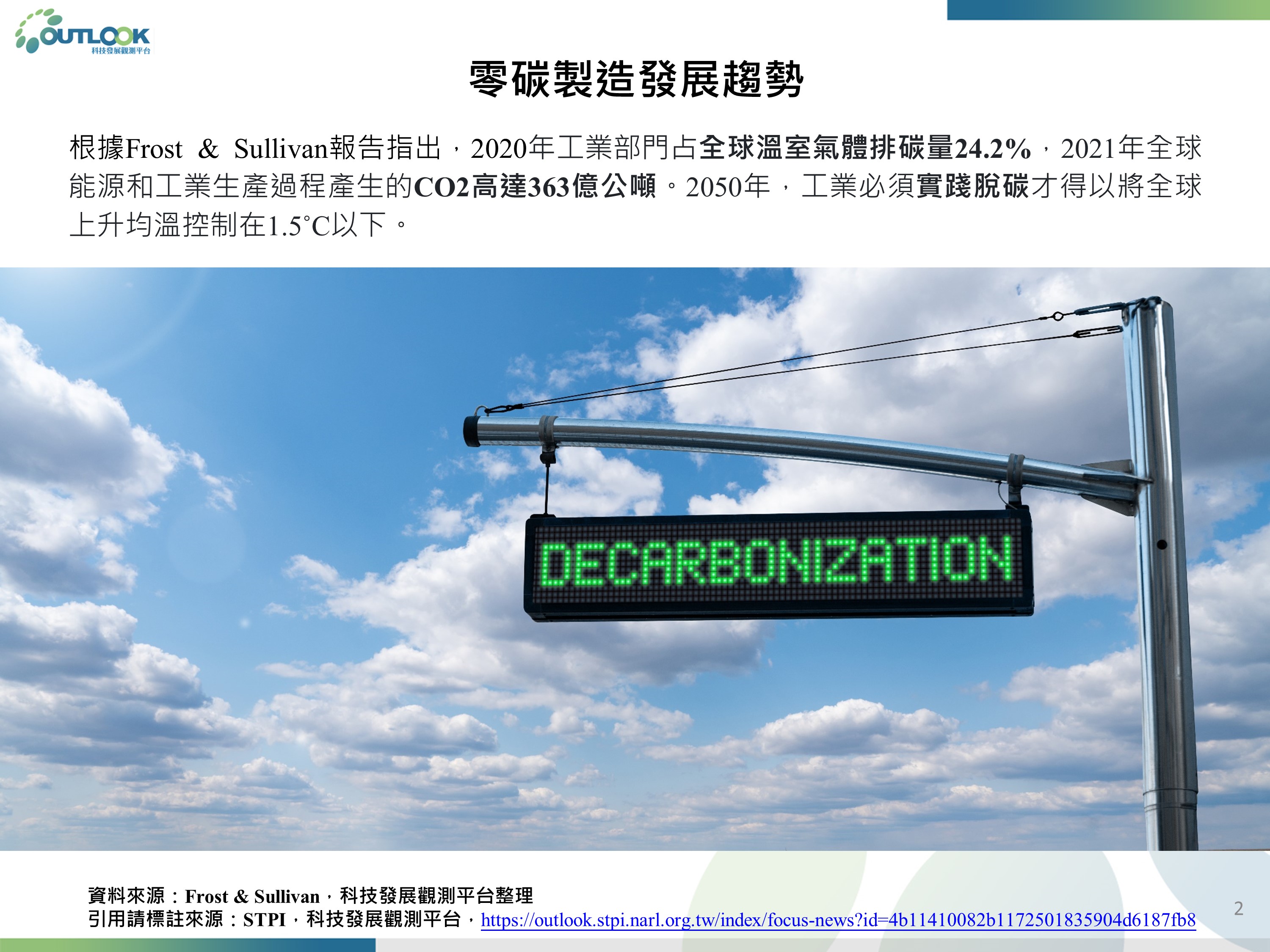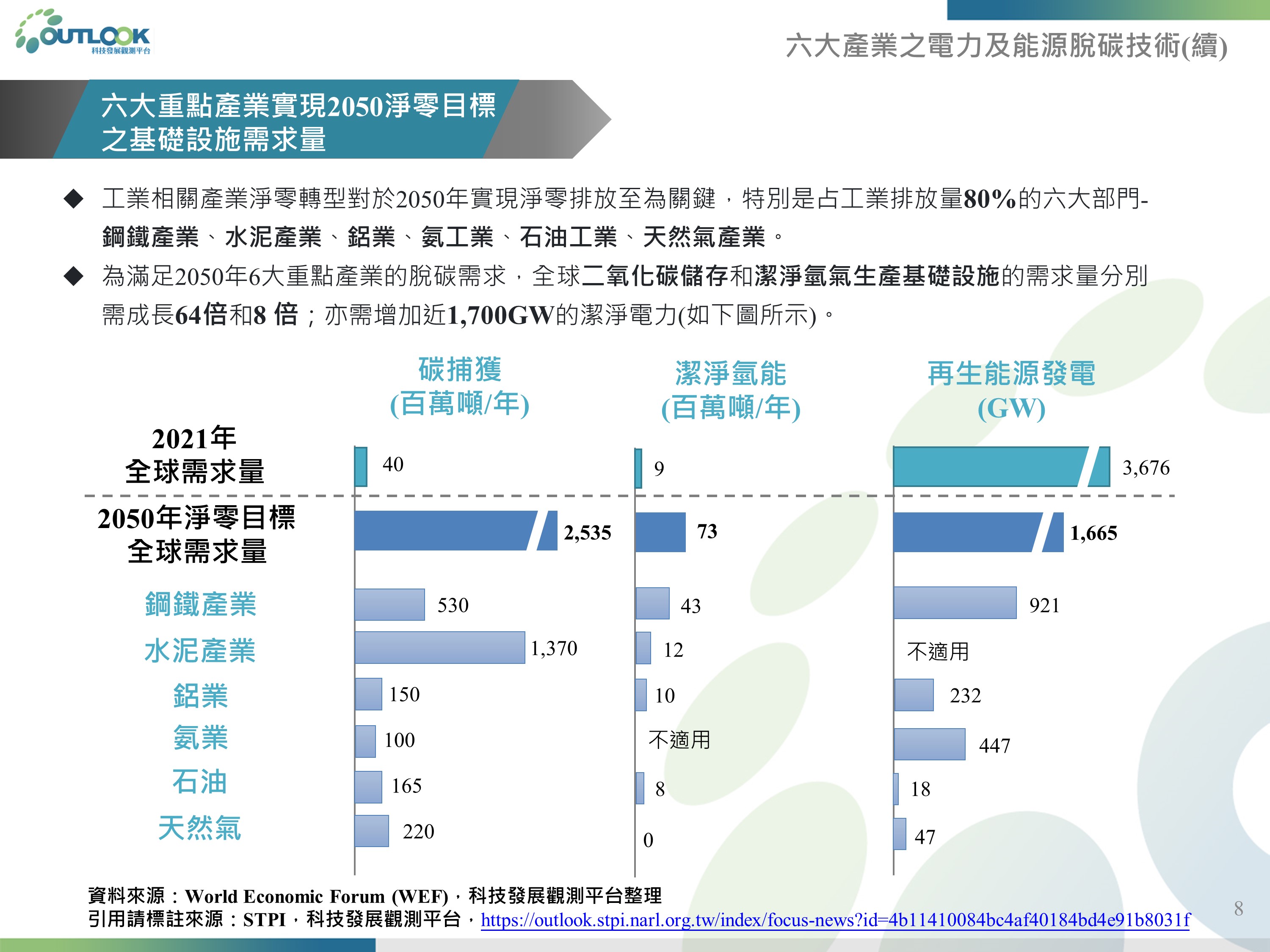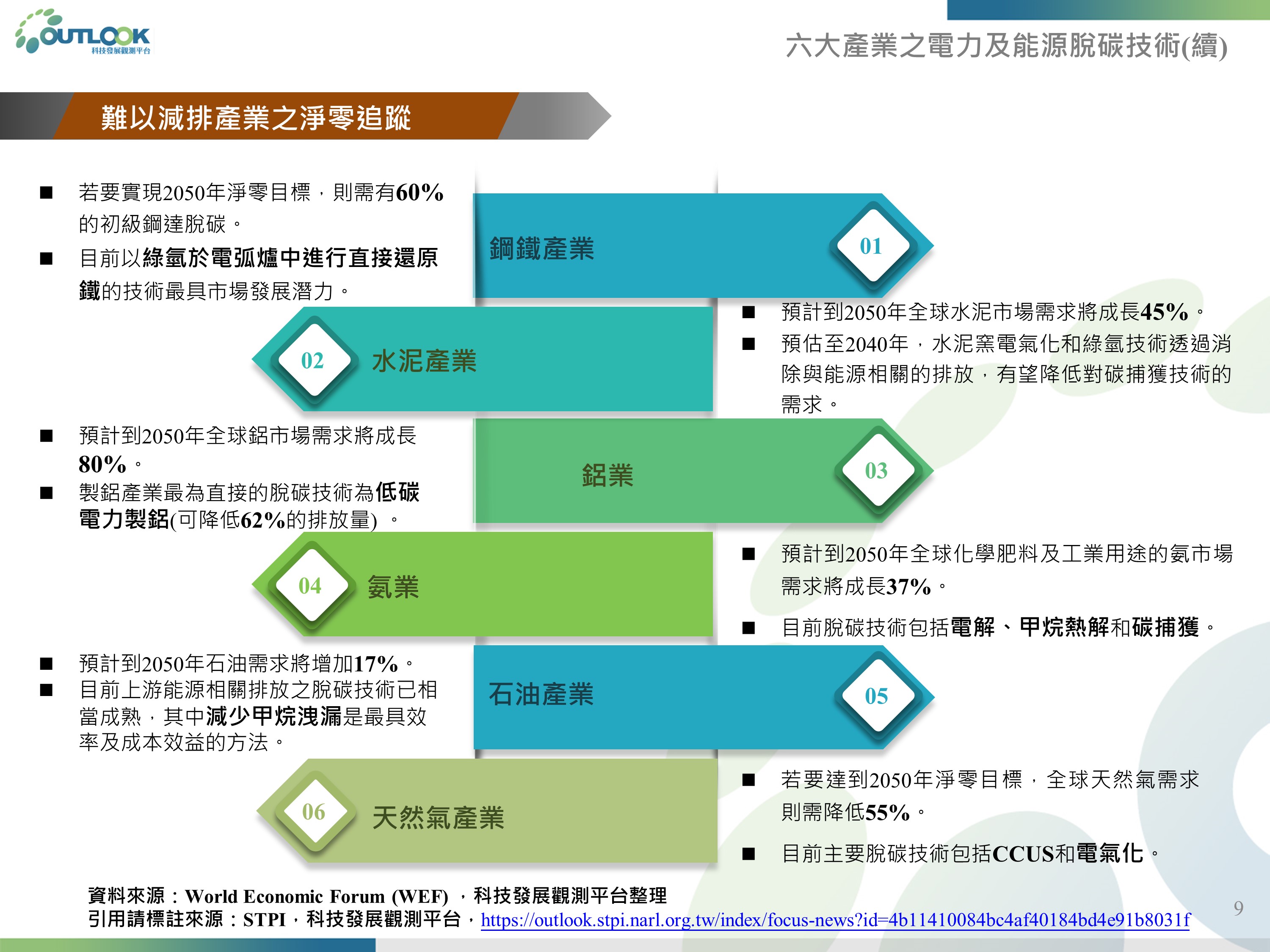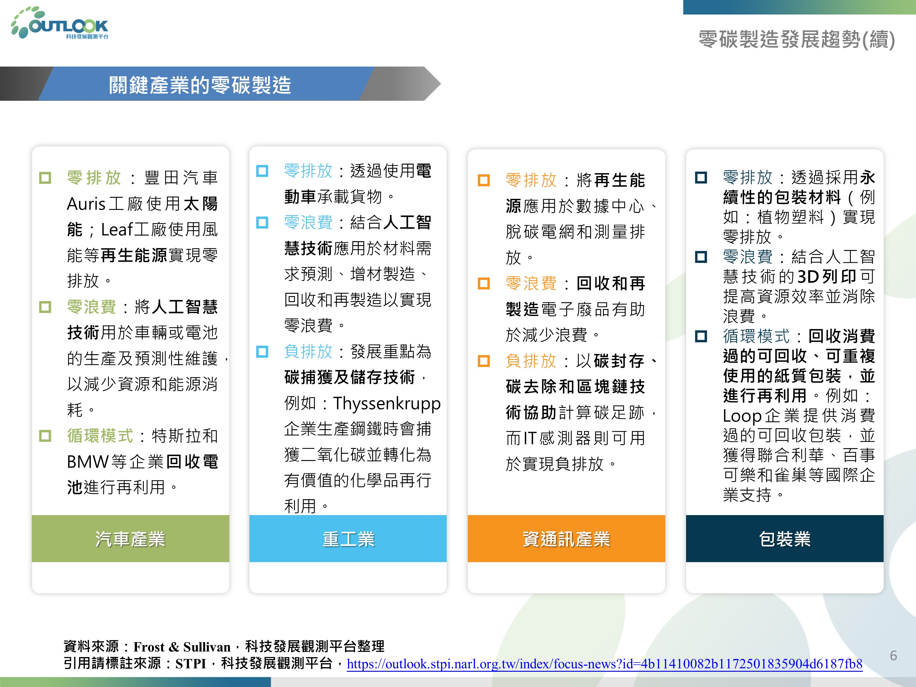 零碳製造發展趨勢、六大產業之電力及能源脫碳技術
