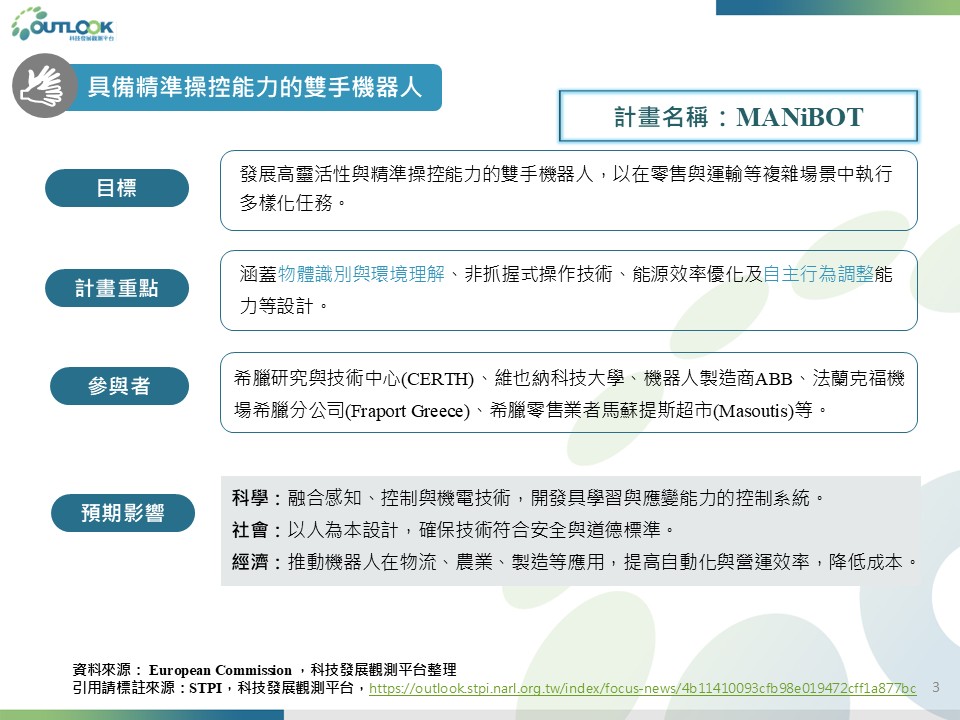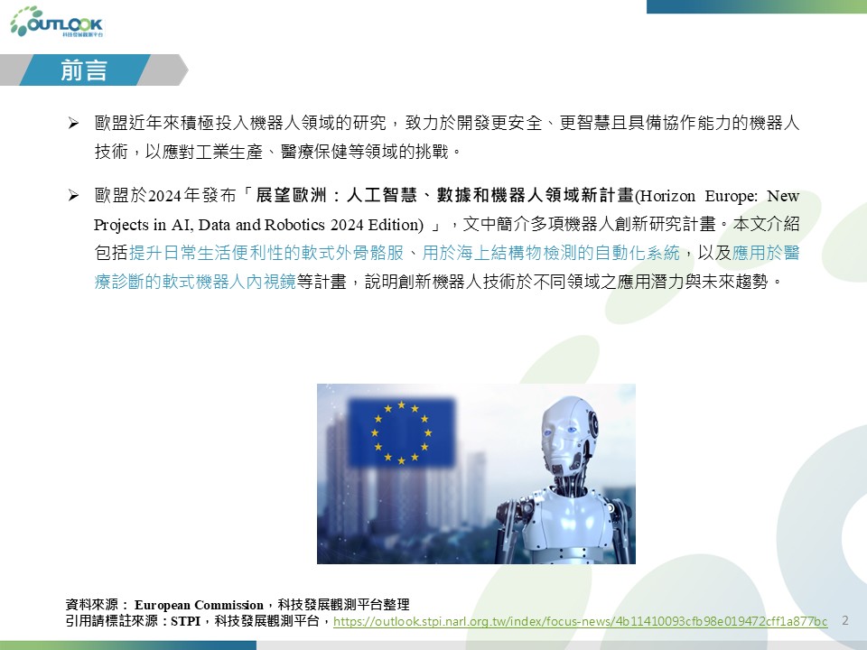 首頁> 焦點主題> 歐盟先進機器人研發計畫介紹